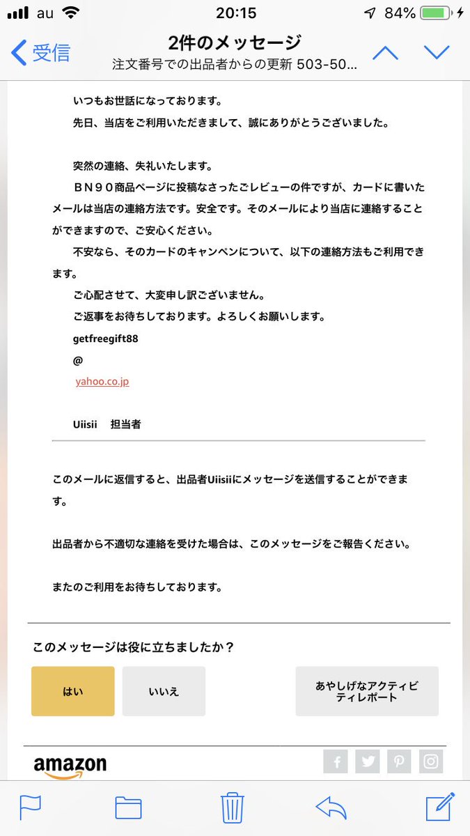 amazonで商品を購入したところ おめでとう当たった とかい yahoo 知恵袋