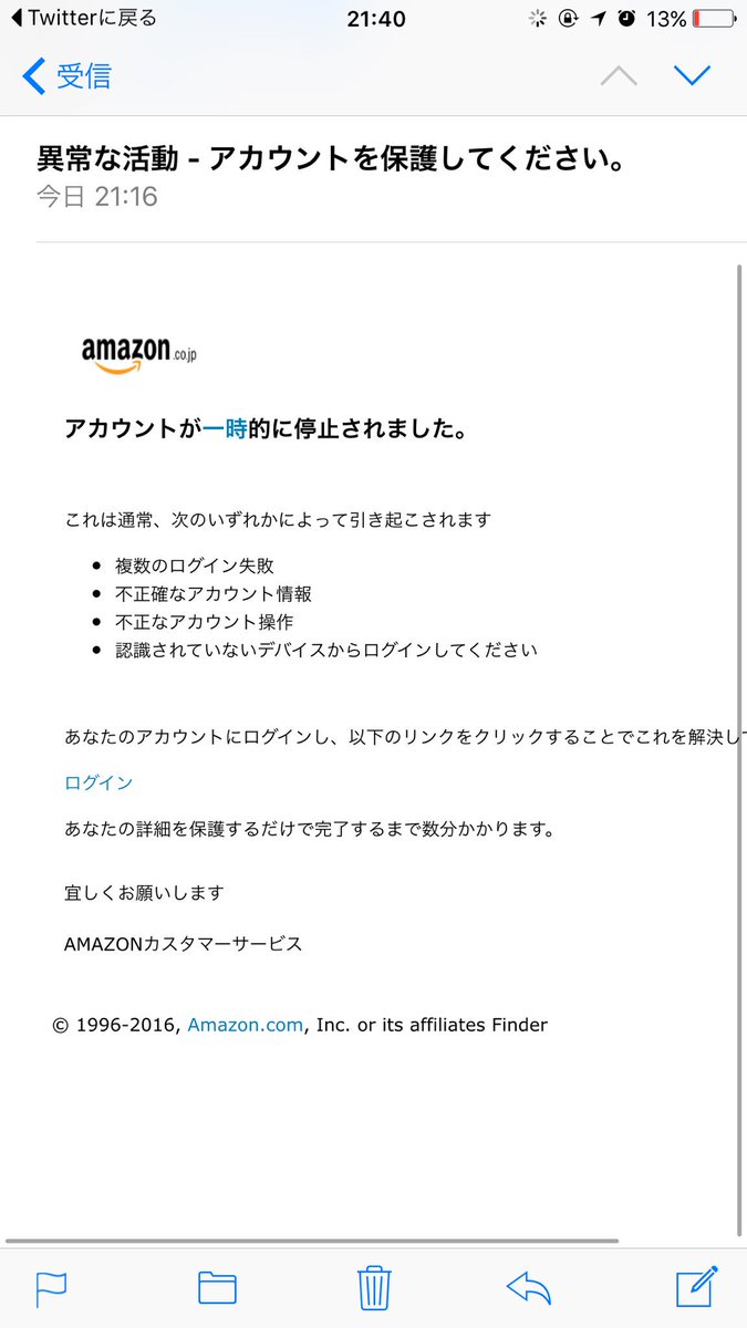 注意 amazonアカウント 詐欺フィッシングメール 異常なログインが見つかりました
