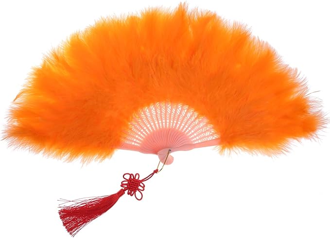 innovationfactory ジュリアナ扇子 ジュリ扇子 ジュリ扇 羽根扇子 バブリー セクシー 衣装 羽 扇子 毛が抜けない ファー チャイナ ダンス コスプレ セット オレンジ m