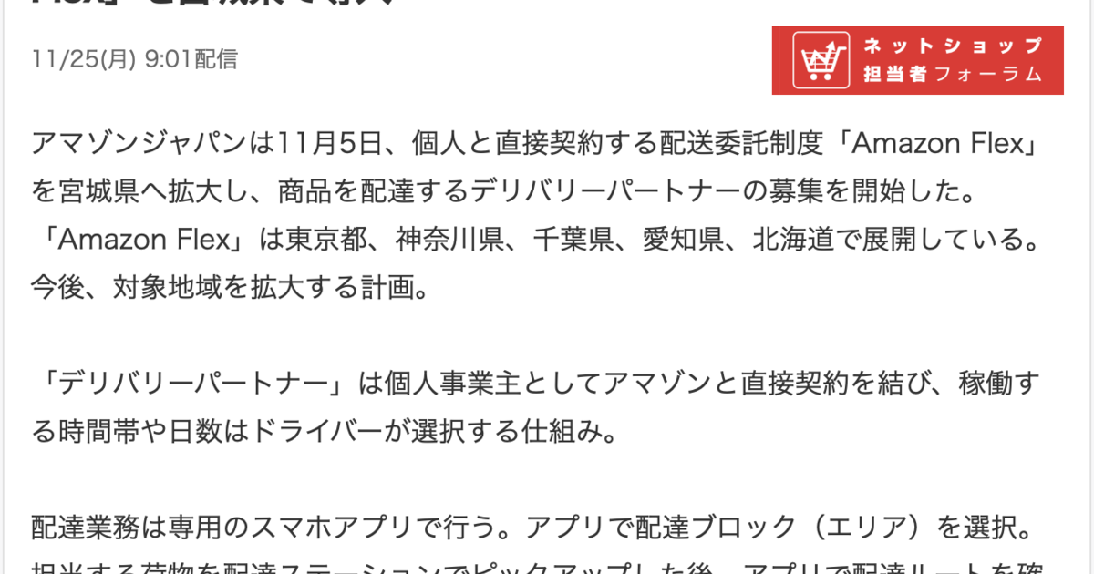 第10位 アマゾンジャパン合同会社 amazon flex 東京で軽貨物ドライバーの求人を探している方におすすめ5社を比較