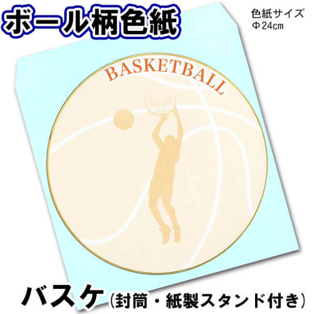 ミドリ 色紙 丸形 カラー色紙 バスケットボール柄 33194006