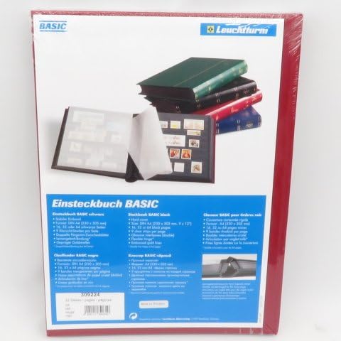 ライトハウス社 切手ストックブック 黒台紙 a4判 9段 32ページ 16枚 表紙色 赤