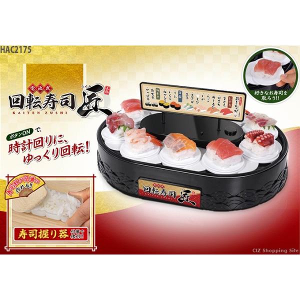 回転寿司 本格サイズ 電池式 寿司握り器付き お皿10枚が同時に回る 回転すし 自動 電動 おすし 電車 わくわく キッズ ファミリー 玩具 食玩 おもちゃ 国内メーカー h019