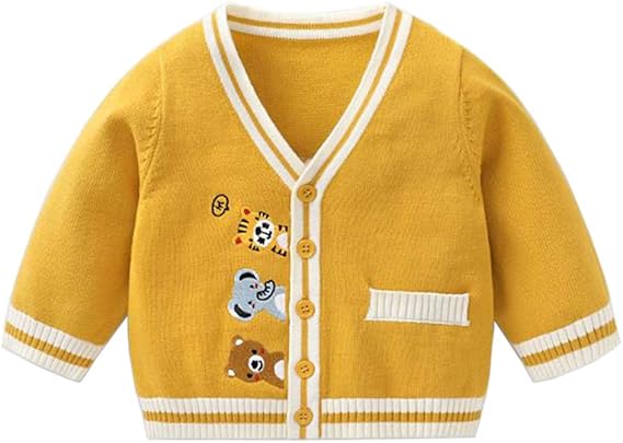 amazon えみり 子供服 カーディガン ベビー服 アウター 厚手 動物柄 可愛い ボーイズ セーター 長袖 春秋冬 vネック リブ袖 カジュアル オシャレ 通園 通学 柔らかい カーディガン 通販