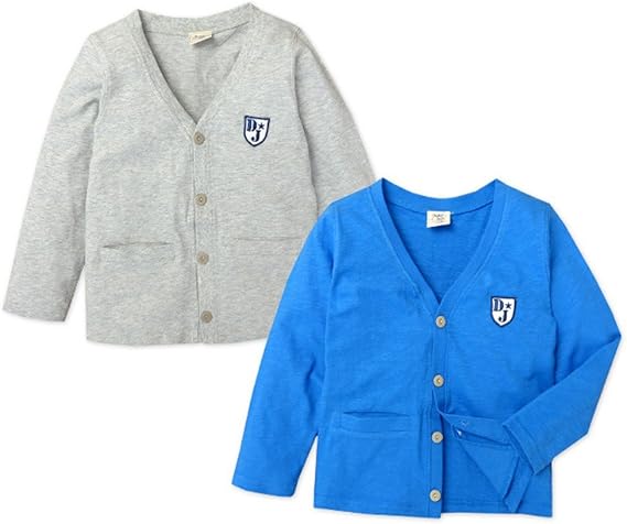 amazon 子供服 男の子 カーディガン 長袖 donkeyjossy ドンキージョシー スラブ生地 ワッペン装飾 vネック 男児 キッズ 2 ブルー 100cm カーディガン 通販
