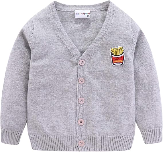 amazon cloudkids 子供服 カーディガンセーター ニット vネック 点状柄 前開き ボタン付き 長袖 軽量 キッズ トップス カジュアル 部屋着 男の子 女の子 保温防寒 グレー 100 カーディガン 通販