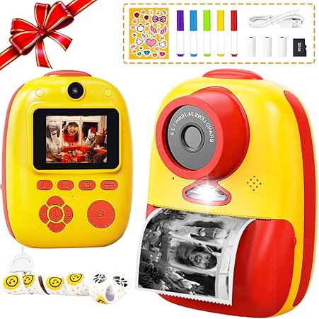 子供用プリントカメラ 子供用デジタルカメラ トイカメラ サーマル加熱仕組み 前後2600万画素 10倍ズーム 1080p fhd動画 自撮可能 連続撮影 タイムラプス撮影 1000mahのバッテリー usb type c充電 2インチips画面 日本語説明書付き 32g sdカード付き