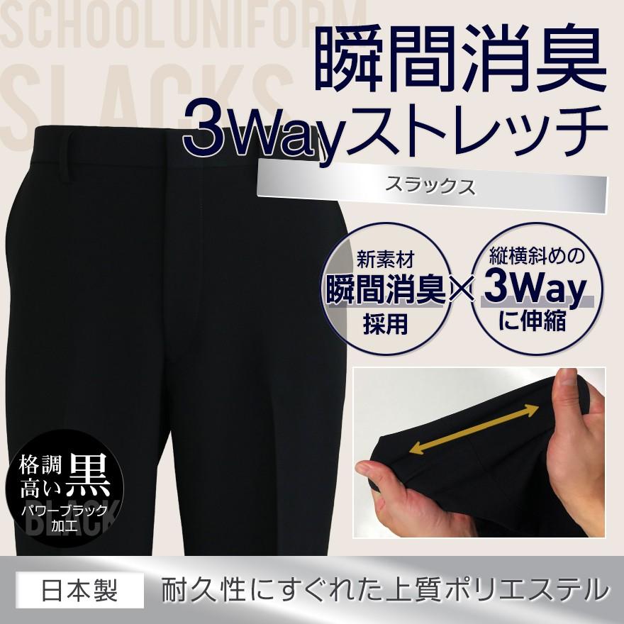 日本製 メーカー直販 学生服 冬ズボン 消臭加工 ポリエステル100 ノータック w64 w120 標準型