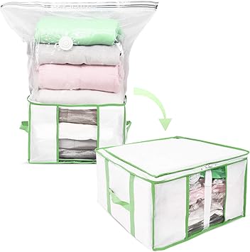 taili ふとん圧縮ボックス 羽毛布団収納袋 圧縮袋付き収納ボックス 圧縮袋と収納ボックス一体型 衣類 冬物 タオルケット毛布用 繰り返す利用可能 掃除機対応可能 小