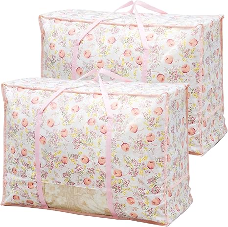 qunbor 布団収納ケース 3枚組 布団収納袋 大容量 衣装ケース 防塵 除湿 防虫 不織布 布団カバー ふとん 羽毛布団 衣類収納 クリア窓付 省スペース 収納ボックス 通気性が良い 持ち手付 布団袋