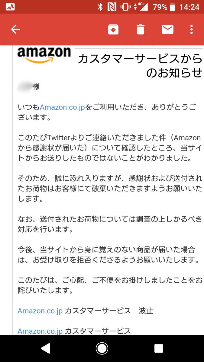 注意 amazonから黄色い封筒の感謝状 問い合わせたら 当サイトがお送りしたものではないことがわかりました togetter