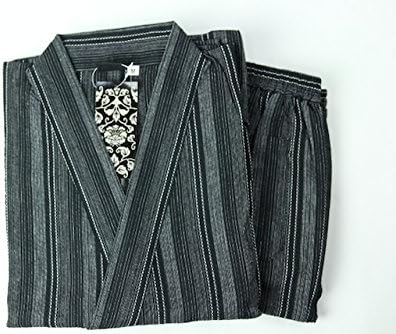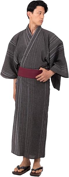 amazon 浴衣 メンズ セット 男 濃グレー地に黒白の縦縞 ll 男物綿麻浴衣3点セット グレー 浴衣 通販