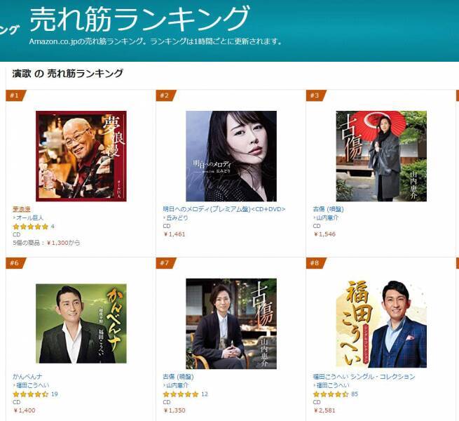 amazon co jp 売れ筋ランキング 歌謡曲 演歌 の中で最も人気のある商品です