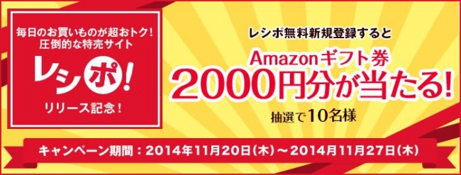 レシポ 新規会員登録 無料 でamazonギフト券2 000円プレゼントキャンペーン開催中 株式会社ニジボックスのプレスリリース