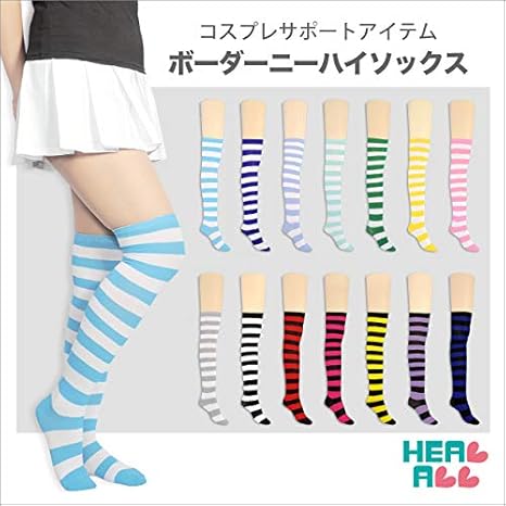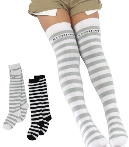 amazon スーパーロングオーバーニーソックス 白 黒 しま幅1cm オーバーニーソックス ニーハイソックス 縞々 しましま 靴下 着圧ソックス