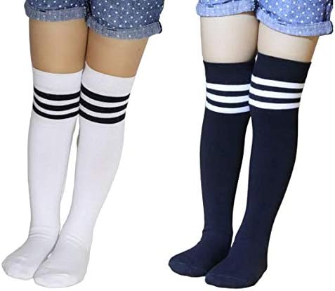 amazon ニーソックス 黒 白 2足セット ストライプ レディース ロングソックス 美脚 ハイソックス ひざ下ソックス 2足セット 黒1 白1 ソックス 通販