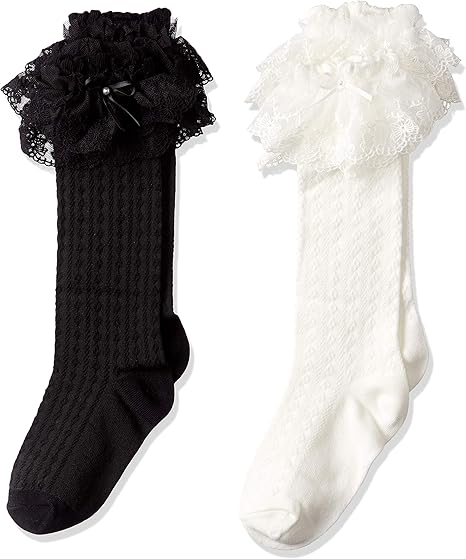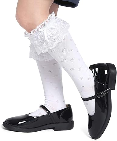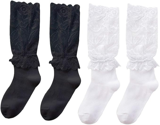 voarge ベビー キッズ 靴下 快適な カジュアル レースハイソックス 女の子フォーマルレースハイソックス 黒と白
