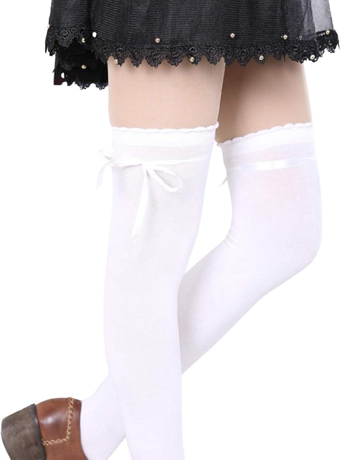 amazon ノーブランド品 可愛い ハイソックス 弹性 膝下 タイツ フリーサイズ 白 ソックス 通販