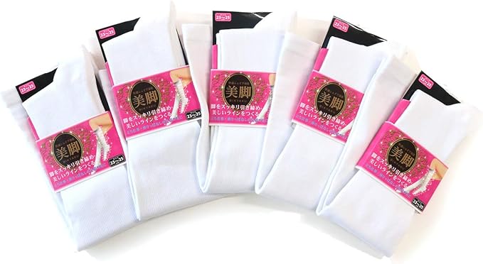 着圧5本指ハイソックス 白無地 むくみとり 白ハイソックス