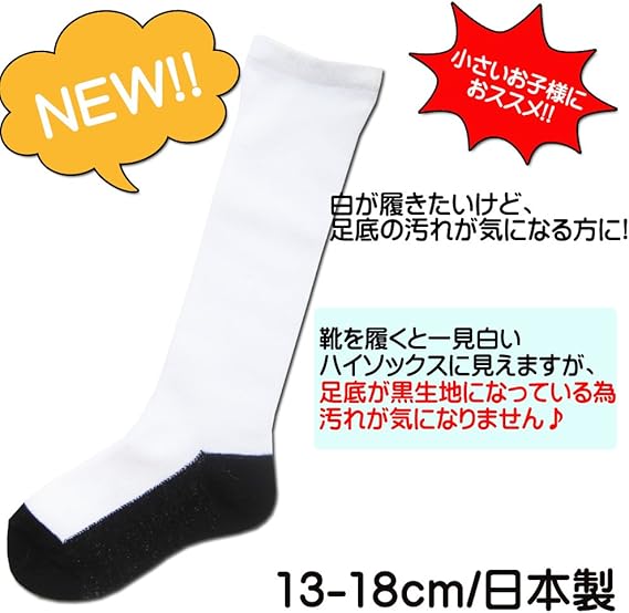 amazon ネック nekk 日本製 靴履いてる風 子ども用 ハイソックス 膝下丈 靴下 足底ブラック仕様 13 18cm ソックス 通販