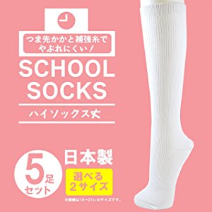 新学期 オフィスなど スクールソックス スクールハイソックス 26cm丈 白 5足セット 22 25cm