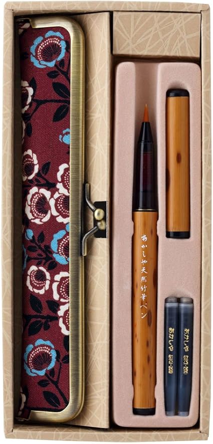 あかしや 筆ペン 天然竹筆ペン 京帯地ペンケースセット 椿 ak5000ms tu