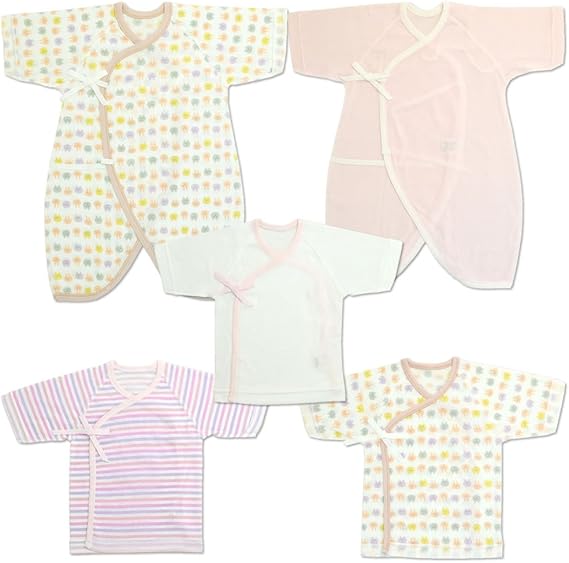 amazon co jp 新生児肌着 5点セット クレヨン柄 短肌着3着 コンビ肌着2着 日本製 ピンク 服 ファッション小物