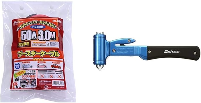 amazon メルテック ブースターケーブル hv車対応 軽自動車 dc12v 50a 3m meltec ml 920 メルテック レスキューハンマー 緊急脱出用 meltec ft 16 セット買い ブースターケーブル 車 バイク