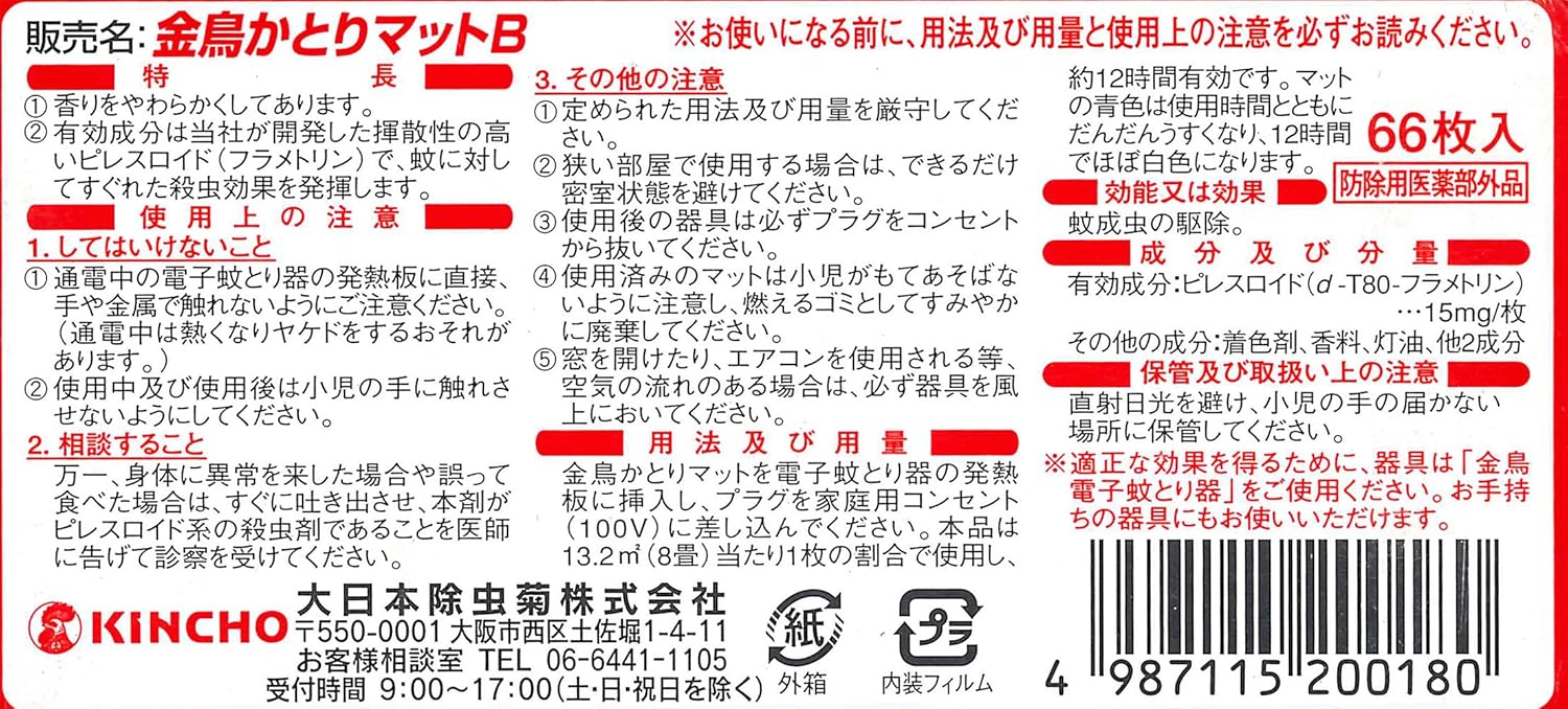 金鳥 蚊取り マット 12時間持続 66枚入