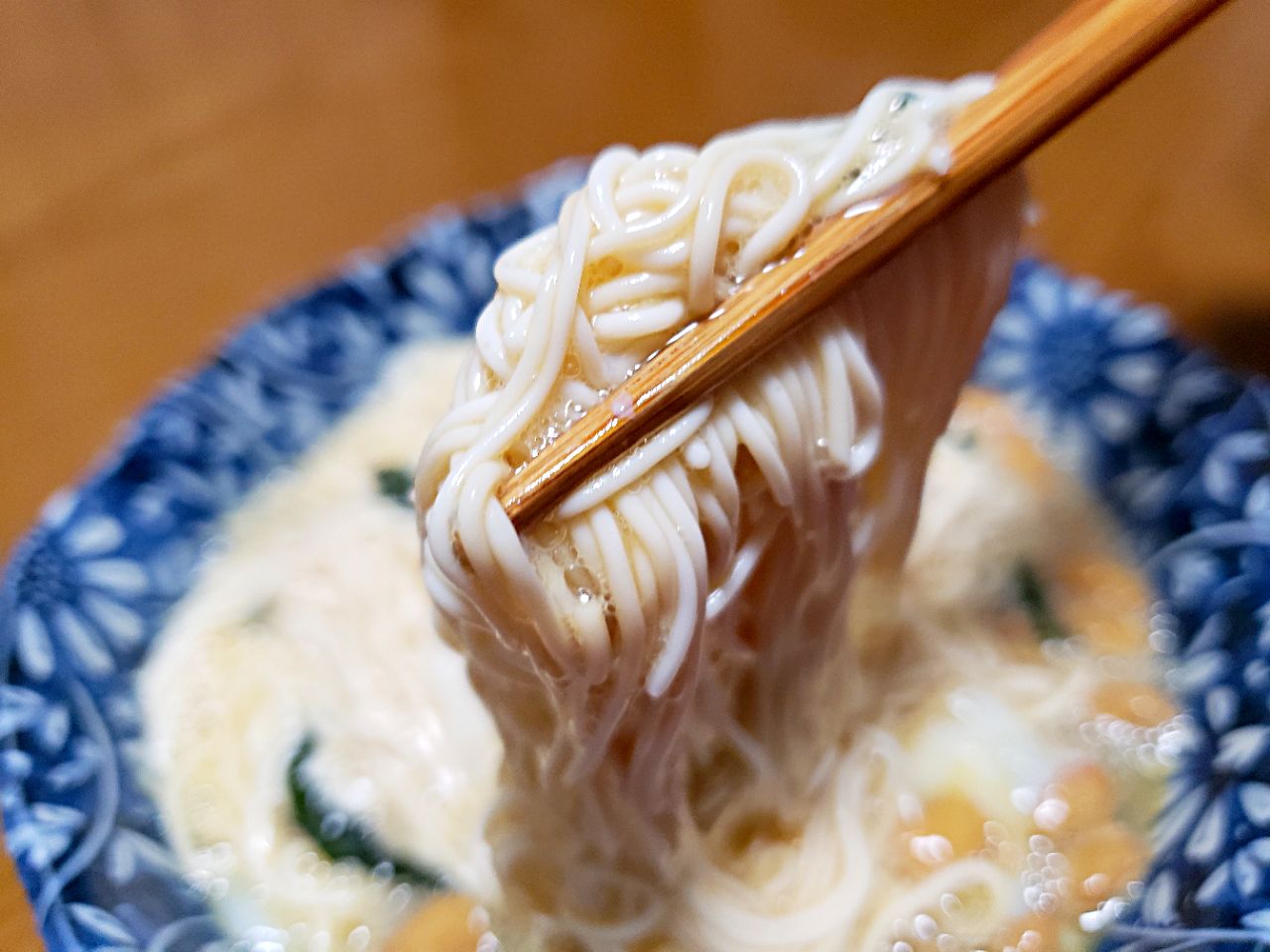 セブンイレブンの とうふそうめん と たまごスープ を合わせたあったかつけ麺が絶品だった