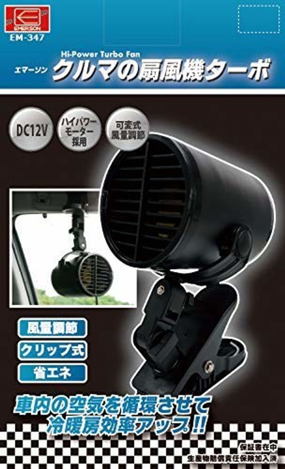 エマーソン 車用扇風機 首振り機能付き dc12v 角度調整 レトロ 省エネ 風量2段階 クリップ ビス止め2way取付け ブラック em 346bk
