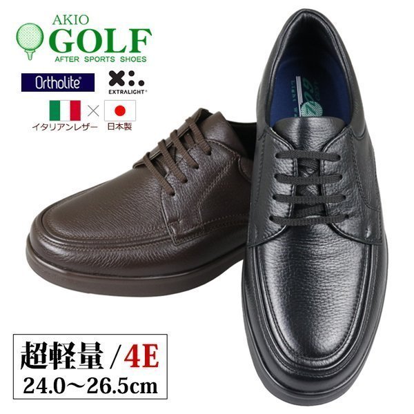 送料無料 アキオゴルフ 5012 本革 イタリーディアスキン 幅広 4e コンフォートシューズ 日本製 スニーカー メンズ 超軽量 革靴 紐靴