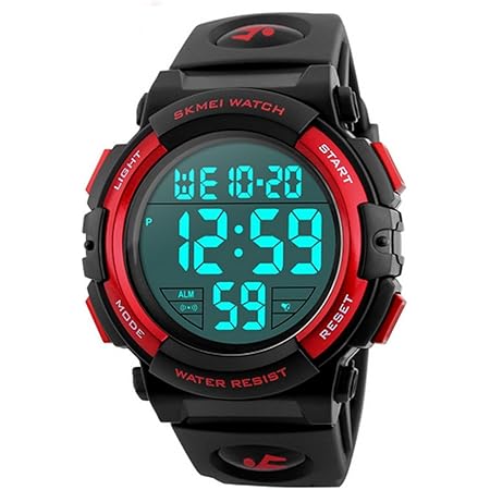 timever タイムエバー デジタル腕時計 メンズ 防水腕時計 led watch スポーツウォッチ アラーム ストップウォッチ機能付き 防水時計 文字が大きくて見やすい レッド