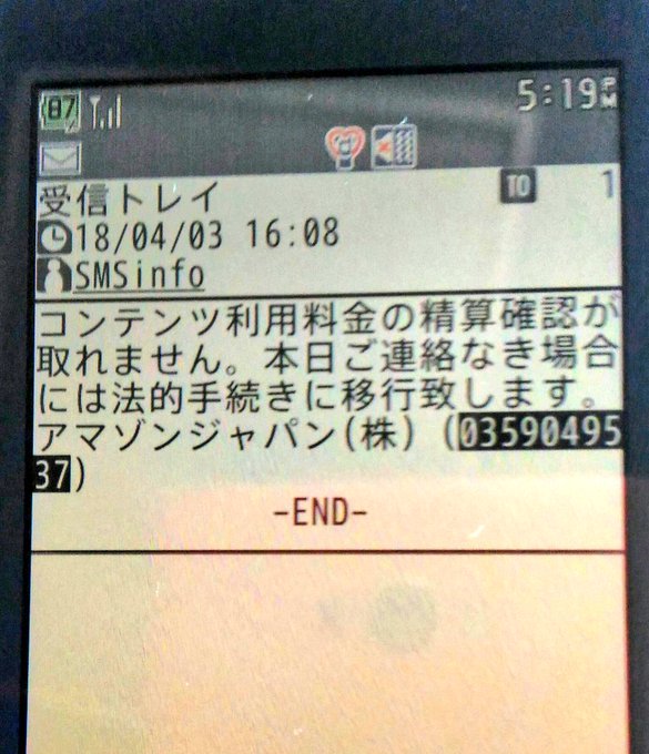 smsinfoという宛先からアマゾンジャパンより架空請求メール ゲノレポ