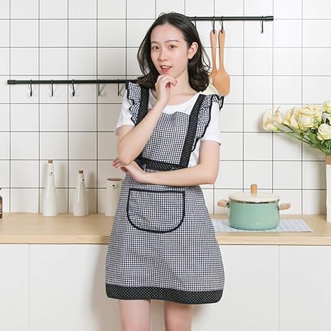 yujiny シンプルエプロン カフェ エプロン 保育士 エプロン 作業用 ガーデンエプロン 調節可能 べーシックエプロン 料理 防水 白黒 チェックエプロン