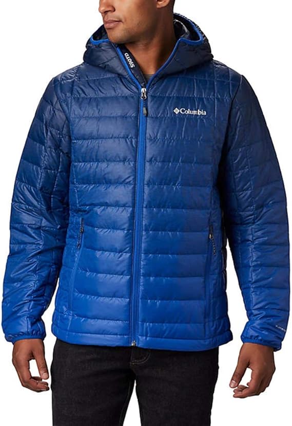 amazon コロンビア ダウンジャケット フード メンズ pm5608 防水 オムニヒート ジップアップ ダウンコート m ブルー コート ジャケット 通販