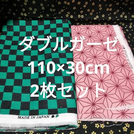 amazon 2枚組 110cm 30cm ダブルガーゼ 鬼滅の刃 炭治郎 禰豆子 麻の葉 ピンク 市松模様 緑 生地 布地 布 夏用 夏 鬼滅 ハギレ はぎれ 布 生地 通販