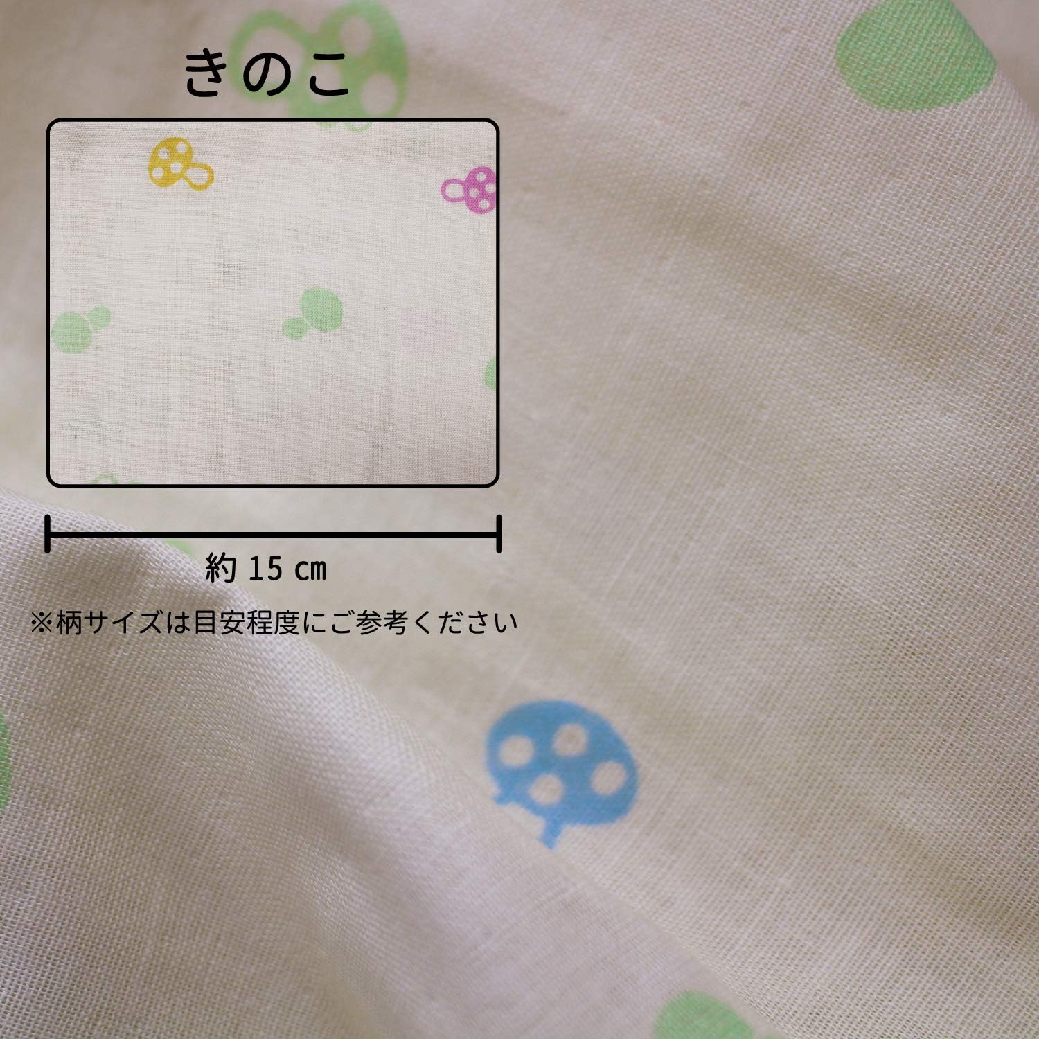 日本製 ダブルガーゼ 生地 約110cm 35cm 綿100 はぎれ マスク きのこ
