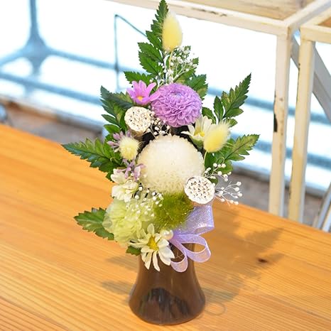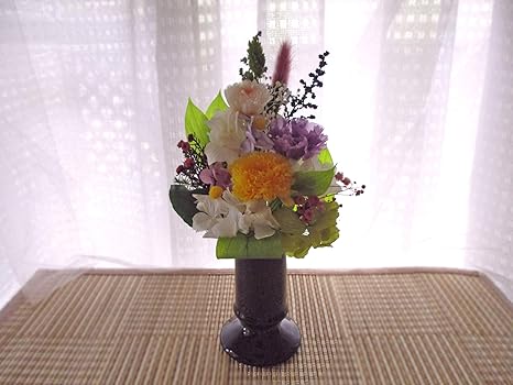 amazon プリザーブドフラワー仏花 お盆 命日 お仏壇花 お供え花 ご供養花 現代仏壇 黒花器付き プリザーブドフラワー オンライン通販