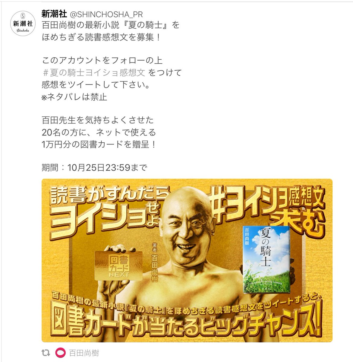 百田尚樹の 夏の騎士 をヨイショして1万円 新潮社の攻めすぎたキャンペーンが半日経たずに中止 buzzap