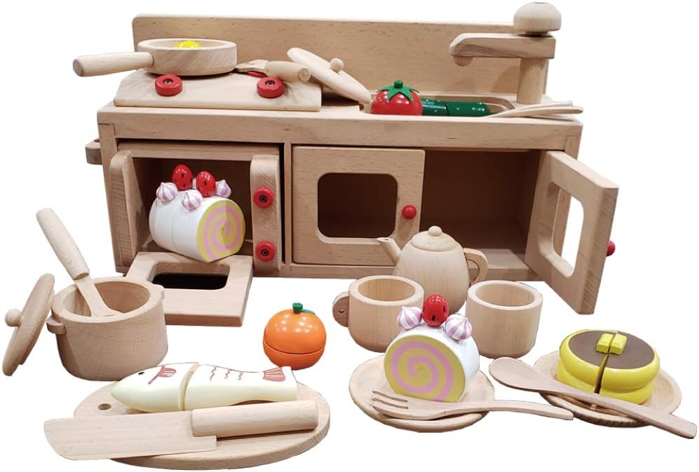 おままごとキッチン お料理 木製 キッチンセット台所 おもちゃ ごっこ遊び 組立式 調理器具 誕生日 プレゼント 入園祝い おもちゃ おもちゃ amazon