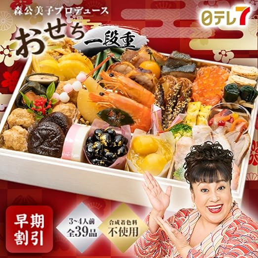 amazon 森公美子太鼓判 よくばりおせち 一段重 送料込み 日本テレビ 森クミ もりくみ おせち クール冷凍便 12月30日お届け 日テレ7 おせち 通販