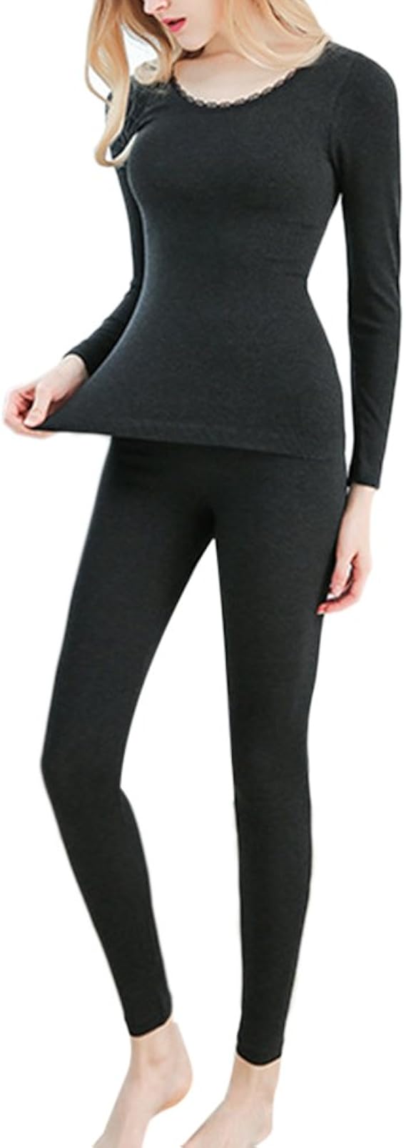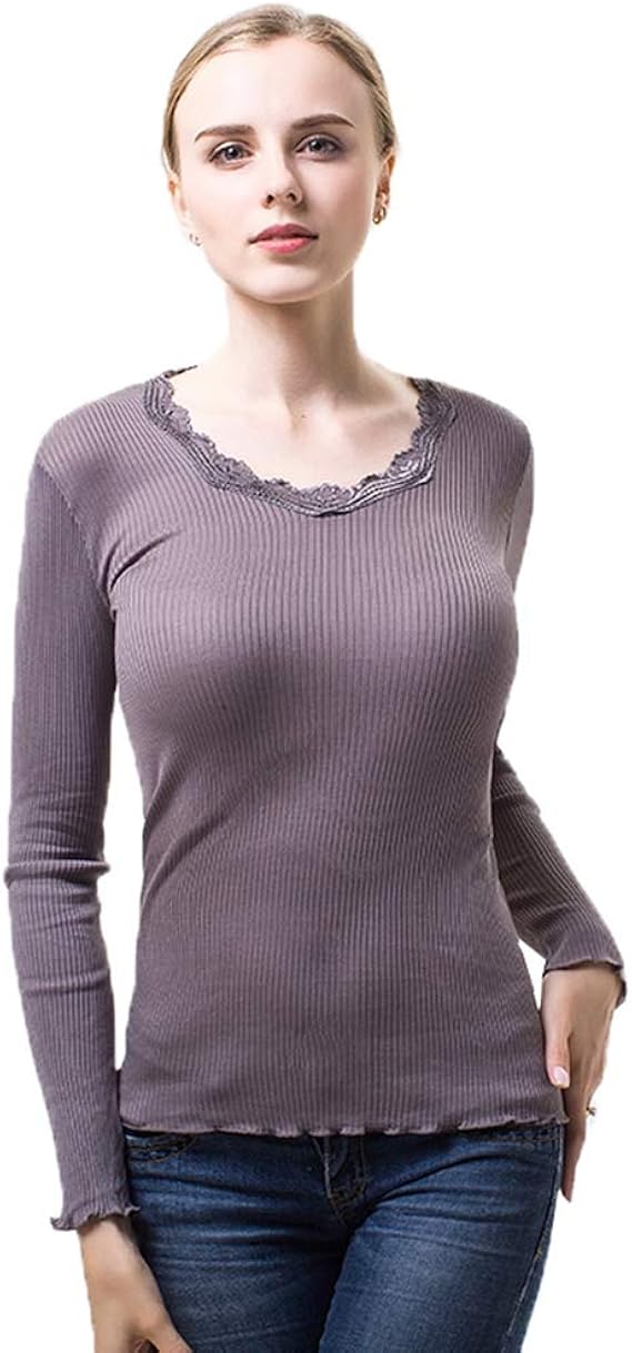 amazon wslcn レディース 極暖 インナー ヒートテック 防寒 vネック シャツ レース 裏起毛 長袖 インナーシャツ 通販