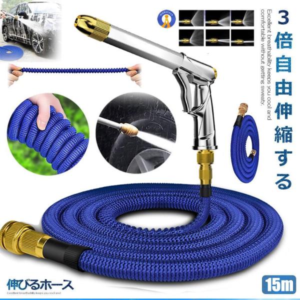 散水ホース ホースリール ガーデンホース 伸縮ホース 伸びるホース 洗車ホース3倍に伸びる 散水ノズル付 省スペース 洗車 水やり ガーデン ベランダ 庭 お家の掃除 洗車 ペットのお風呂 5mから15mまで