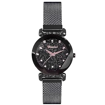 rorios星空腕時計 レディース 人気女性用腕時計 アナログクォーツ ウォッチ 磁気メッシュバンド クリスタル かわいい女性用時計 黒