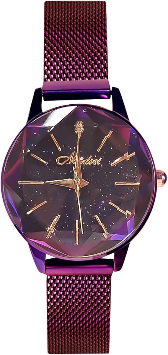 rorios かわいい 腕時計 レディース 人気 女性用 時計 アナログ時計 磁気メッシュバンド キラキラ クリスタル 星空 ファッション クォーツ ウォッチ女性向け時計 パープル