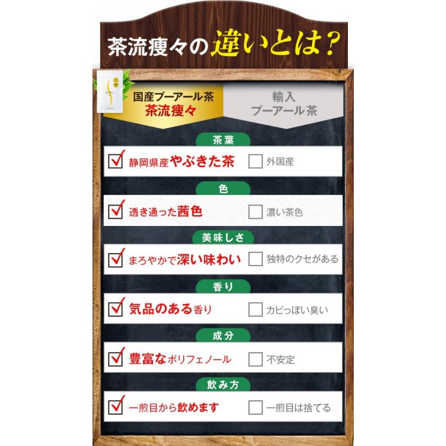 プーアル茶 国産 プーアール茶 ダイエット茶 茶流痩々 2gx10ヶ 4袋セット 送料無料 セール