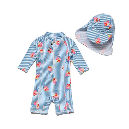 ymgot ベビー 水着 女の子 ラッシュガード 鳥柄 キッズ 水着 キャップ付き 2点セット スイムウェア スイミング