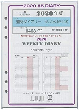 2020年版 a5サイズ 豊富な品 週間ダイアリー 0468 02 システム手帳リフィル ホリゾンタルタイム式