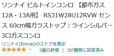 rinnai rx31w13k12rw 12a13a ビルトインガスコンロ 都市ガス用 3口 手前強火力
